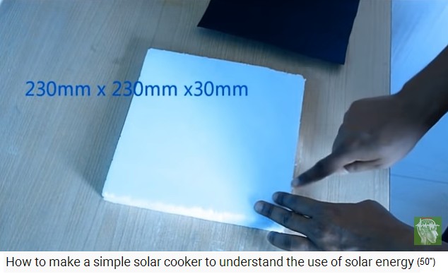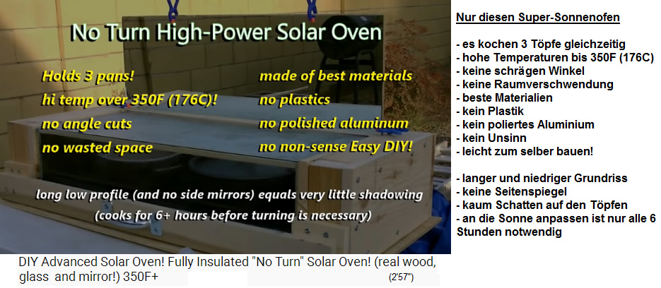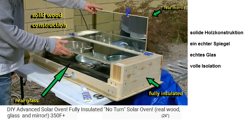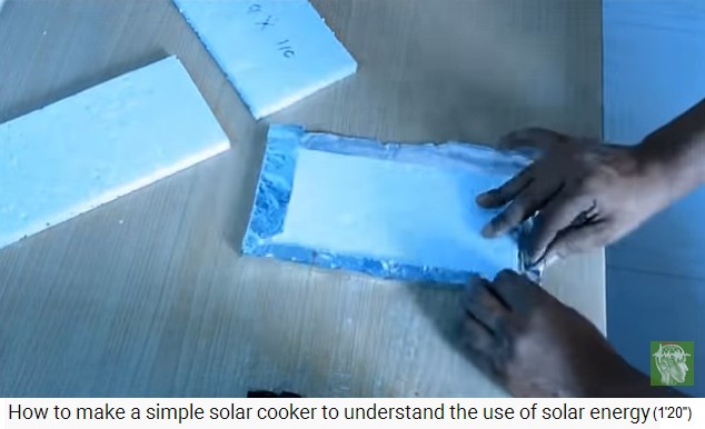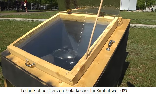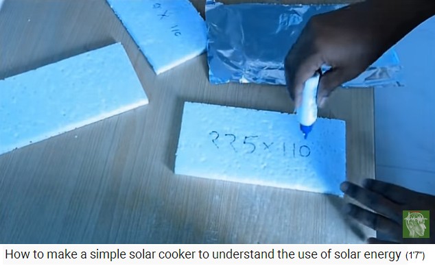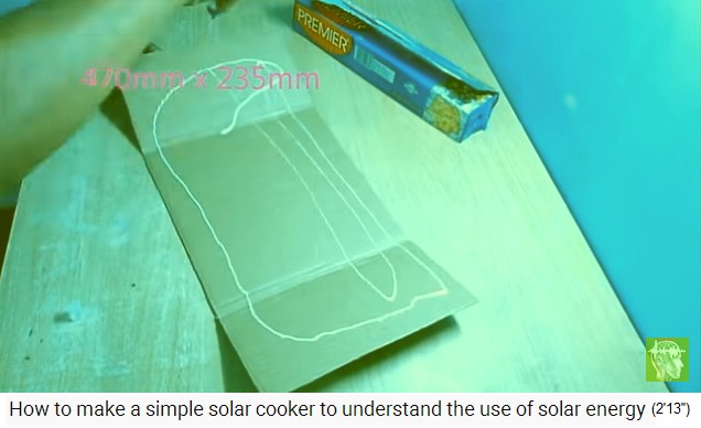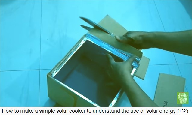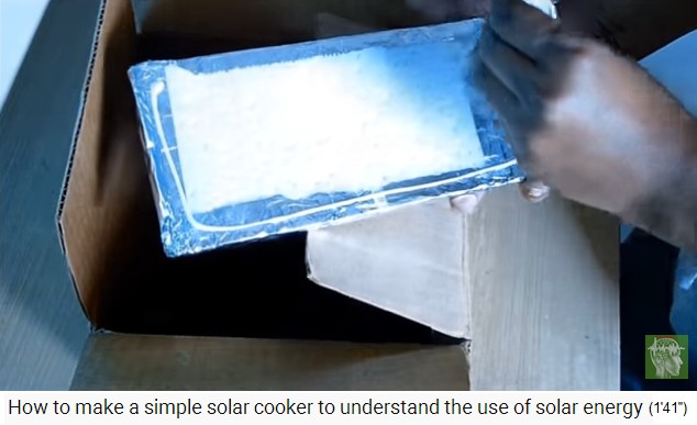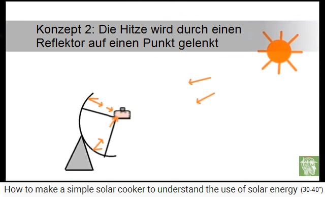 und die Sonnenenergie versteht (3'54'') (original englisch: How to make a simple solar cooker