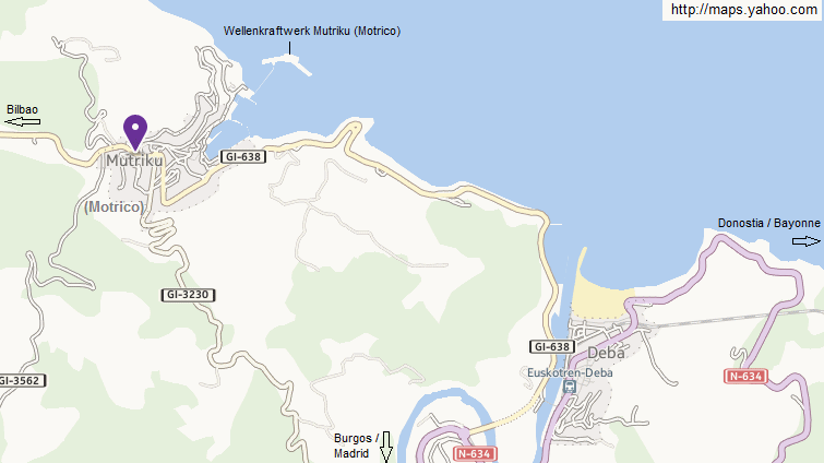 [5] Karte von Mutriku (Motrico) und Deba mit der grossen, neuen Schutzmole mit dem integrierten Wellenkraftwerk: yahoo maps