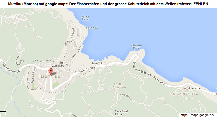 [6] Mutriku (Motrico) auf der Karte von google maps: Der Fischerhafen, der grosse Schutzdeich und das Wellenkraftwerk fehlen: google maps