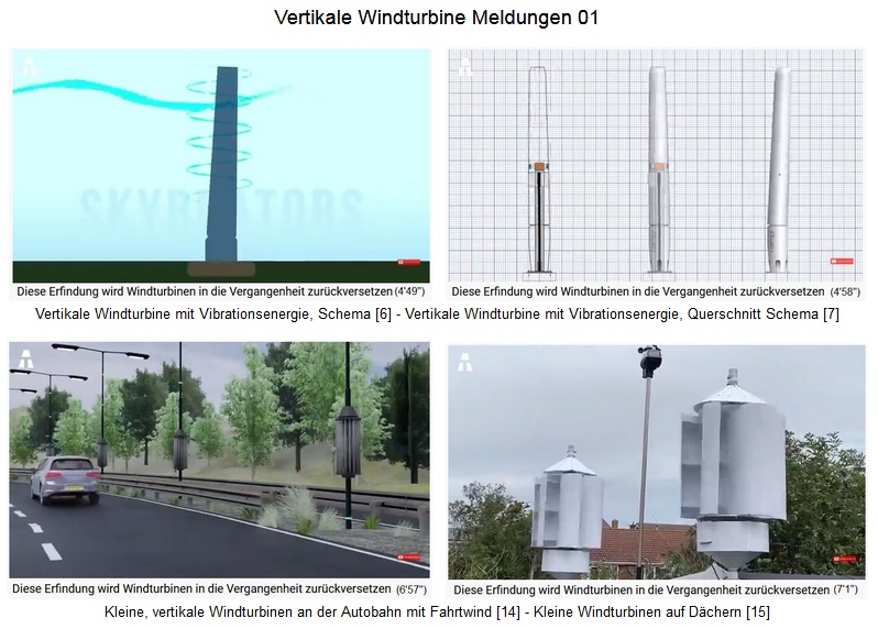 -- es gibt seit langem bereits Windturbinen mit vertikaler Achse, die all die negativen Nebenwirkungen NICHT HABEN, sondern die auch bei leichten und sehr starken Winden laufen und JEDEN Wind egal woher ausnutzen können: