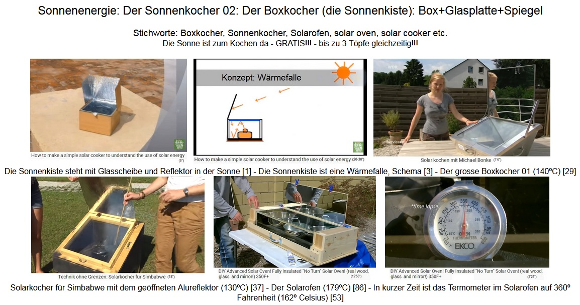Solarkocher, Solarofen [9] - Grubentreibhaus Walipini [10] - Erdschiff mit dicken Erdmauern (englisch: Earth ship) [11]