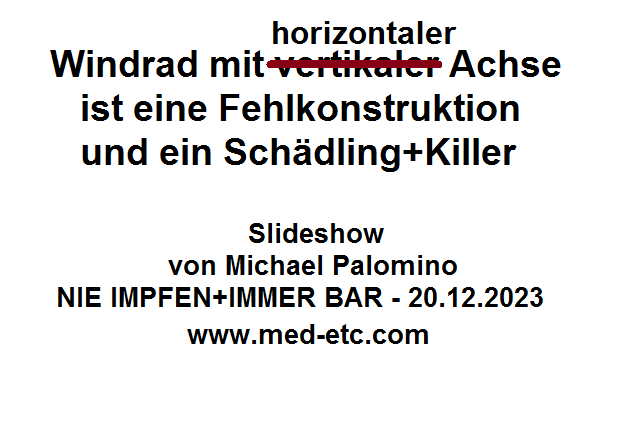 Video: Slideshow 20/21.12.2023: Windrad=Fehlkonstruktion+Schädling+Killer - Fakten gegen Mantelerlass (CH) (13'9'')