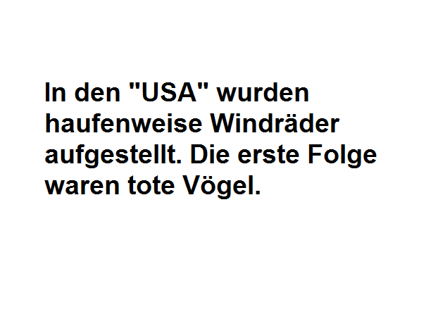 In den "USA" wurden haufenweise Windräder aufgestellt. Die erste Folge waren tote Vögel. [1a]