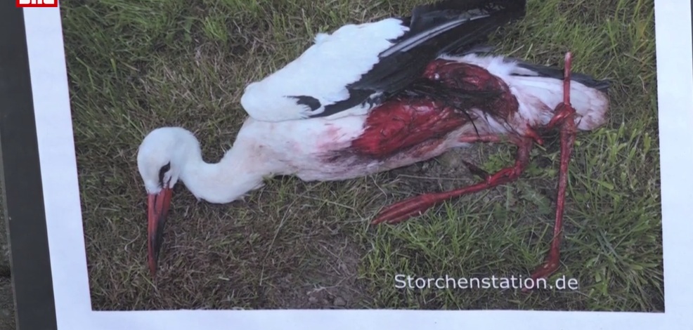 Windrad killt Storch, das kommt in Niedersachsen oder Mecklenburg-Vorpommern sehr oft vor. Foto von Storchenstation.de [1e]