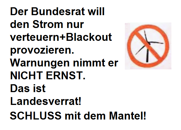 Der Bundesrat will den Strom nur verteuern+Blackout provozieren. Warnungen nimmt er NICHT ERNST. Das ist Landesverrat! SCHLUSS mit dem Mantel! [20]