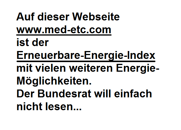 Auf dieser Webseite www.med-etc.com ist der Erneuerbare-Energie-Index mit vielen weiteren Energie-Möglichkeiten. Der Bundesrat will einfach nicht lesen... [27a]