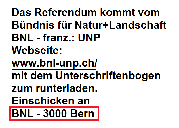 Das Referendum kommt vom Bündnis für Natur+Landschaft BNL - franz.: UNP