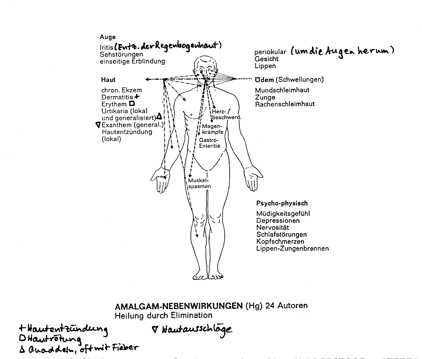 Im Jahre 1968 stellte Gasser (1968) die bereits bekannten "Amalgam-Nebenwirkungen" in dem folgenden Schaubild dar: