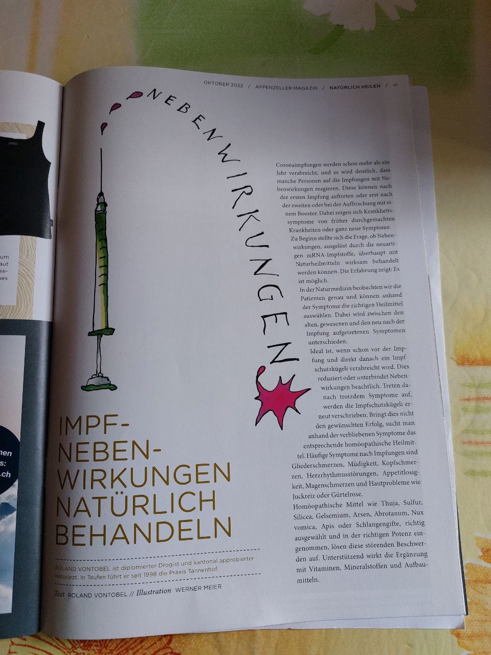 7.10.2022: Das Magazin "Der Appenzeller" meldet: Homöopathie gegen Nebenwirkungen der "Coronaimpfung"
