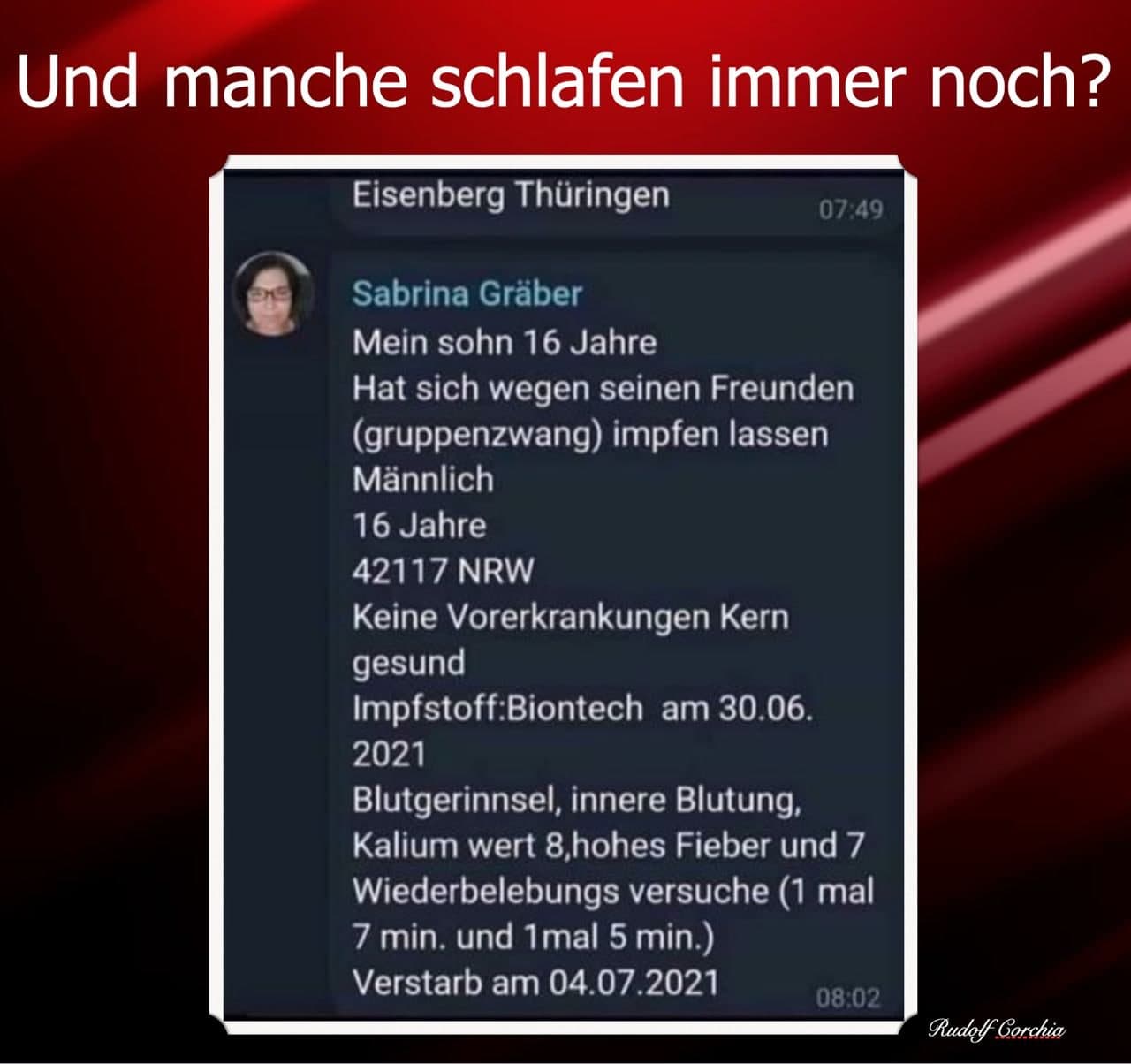 2021 "gegen" Covid "geimpft" und starb plötzlich und