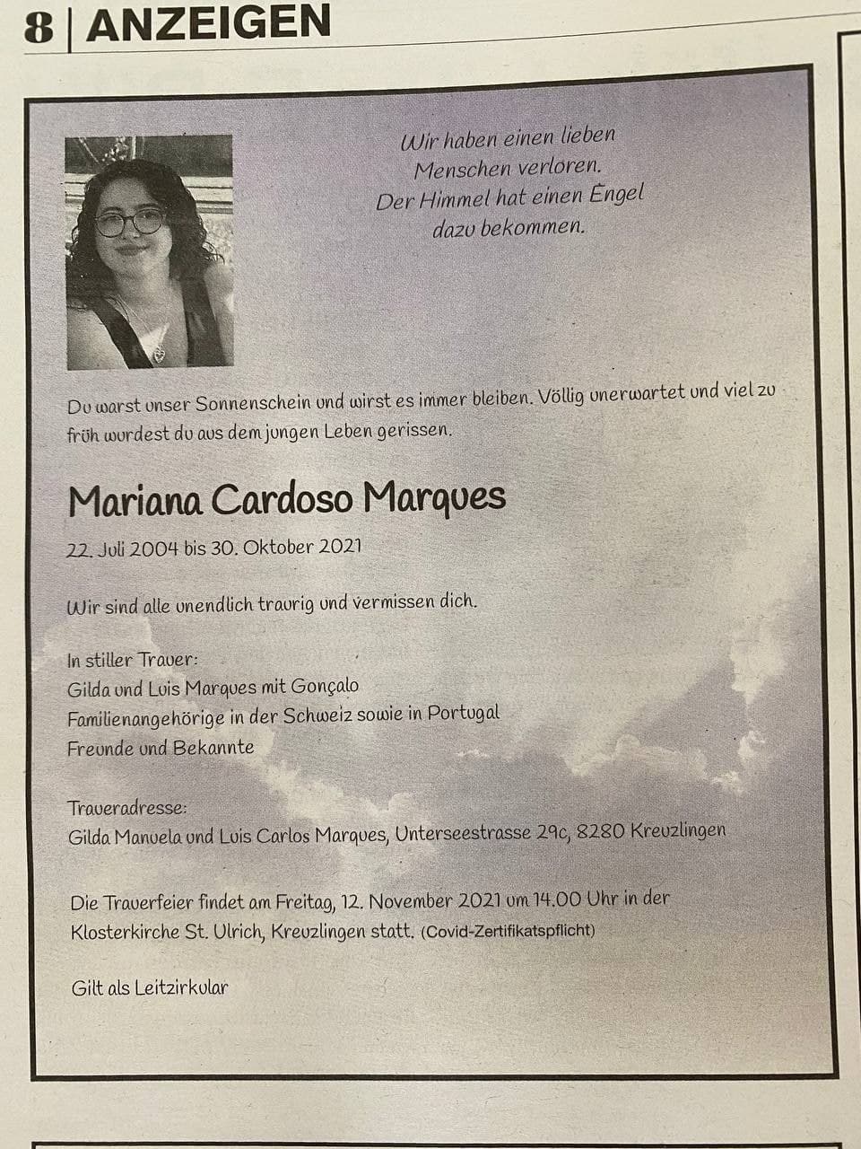 es ist bis heute keine Todesanzeige in der Zeitung