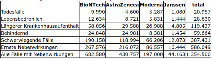EudraVigilence von Mitte Januar 2022 [24]