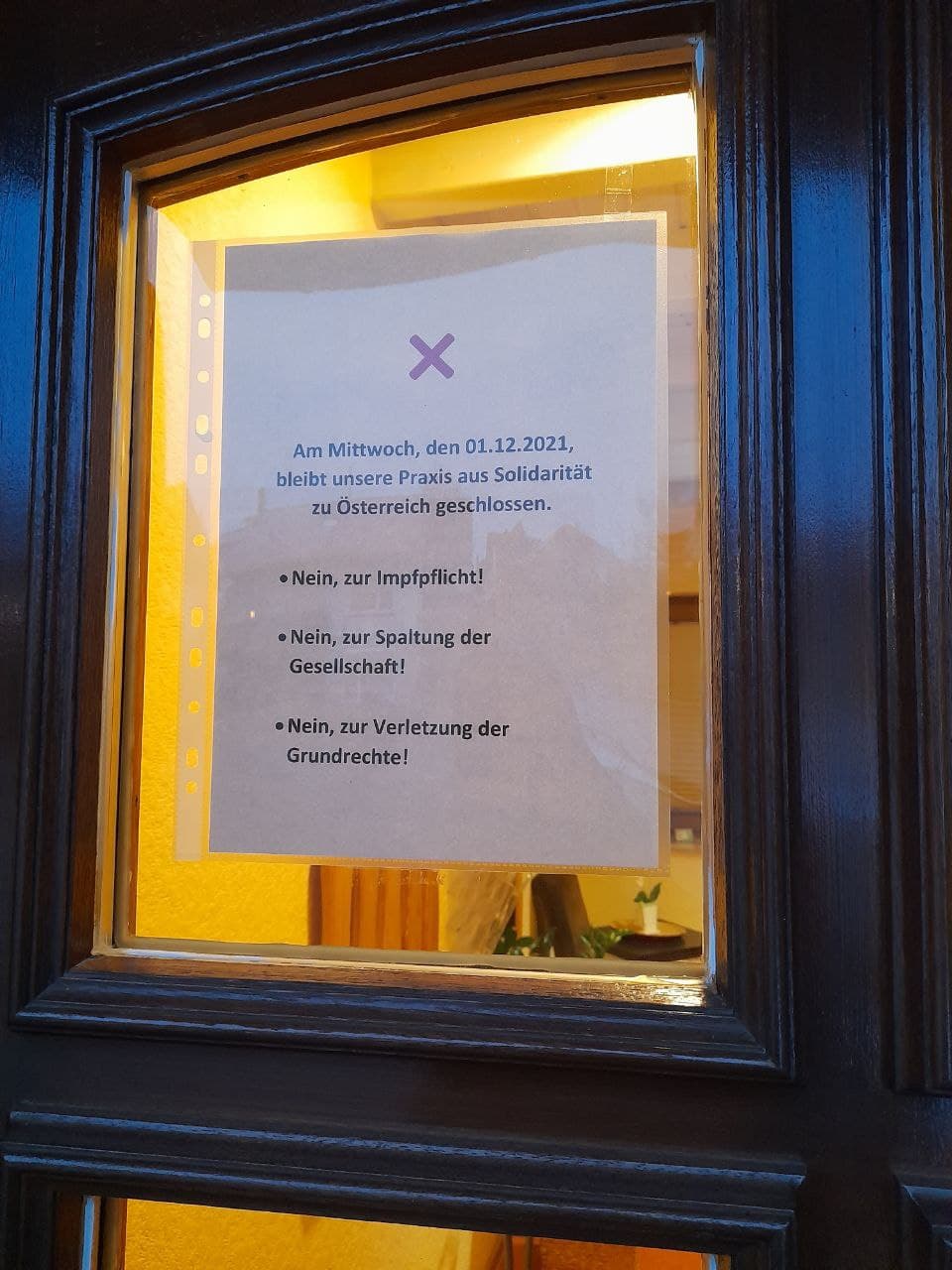 Widerstand mit Streik im 4R am 20.11.2021: Arztpraxis hat am 1.12.2021 geschlossen aus Solidarität mit Österreich gegen den kriminellen Kanzler Schallenberghitler [11]