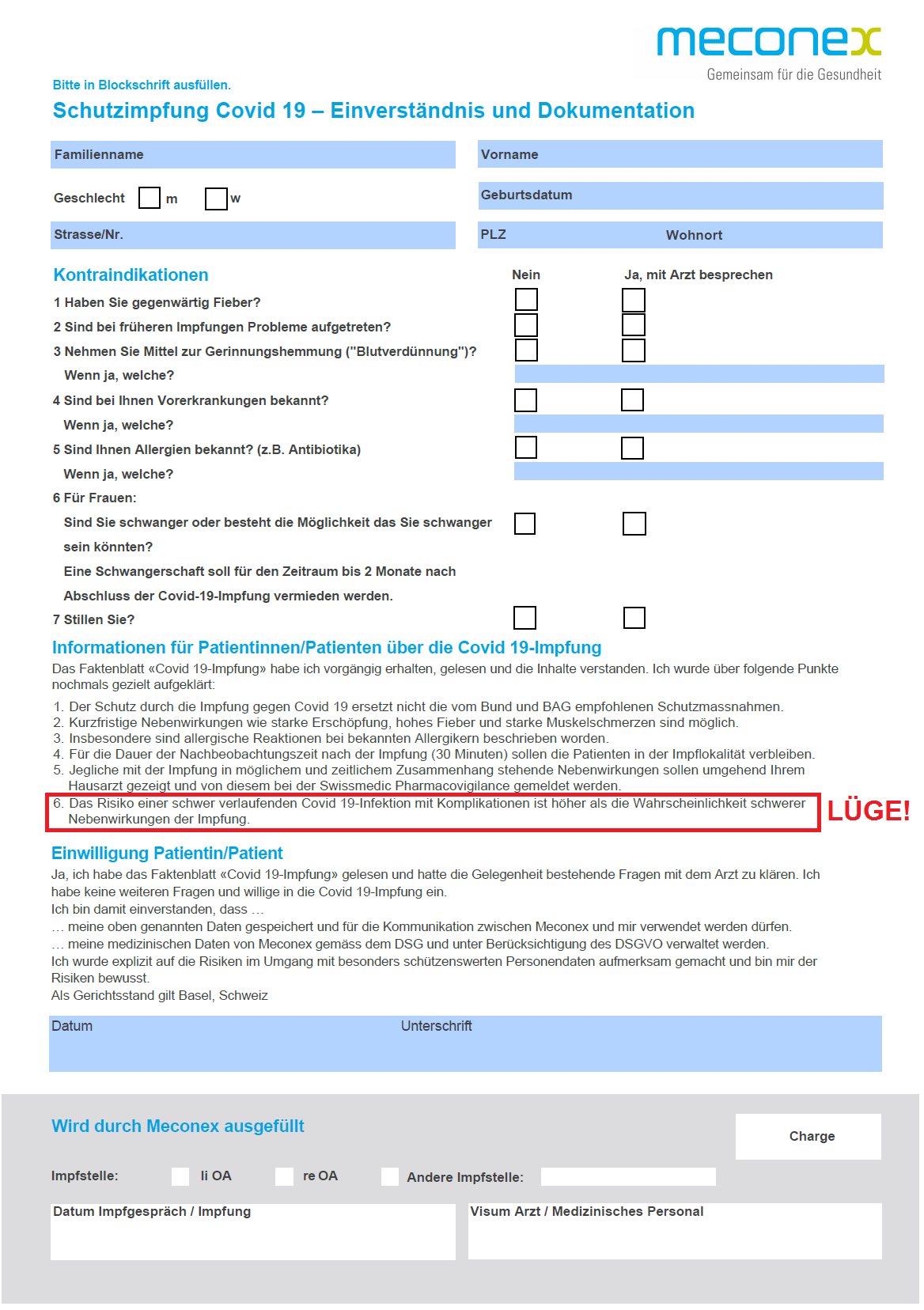 Die Einwilligungserklärung von Merconex für GENimpfungen in Basel behauptet, das Todesrisiko durch Corona19 sei grösser als durch die tödliche GENimpfung - Frau Levy vom BAG kommt aus Basel und scheint mir eine System-Kommunistin zu sein [44]