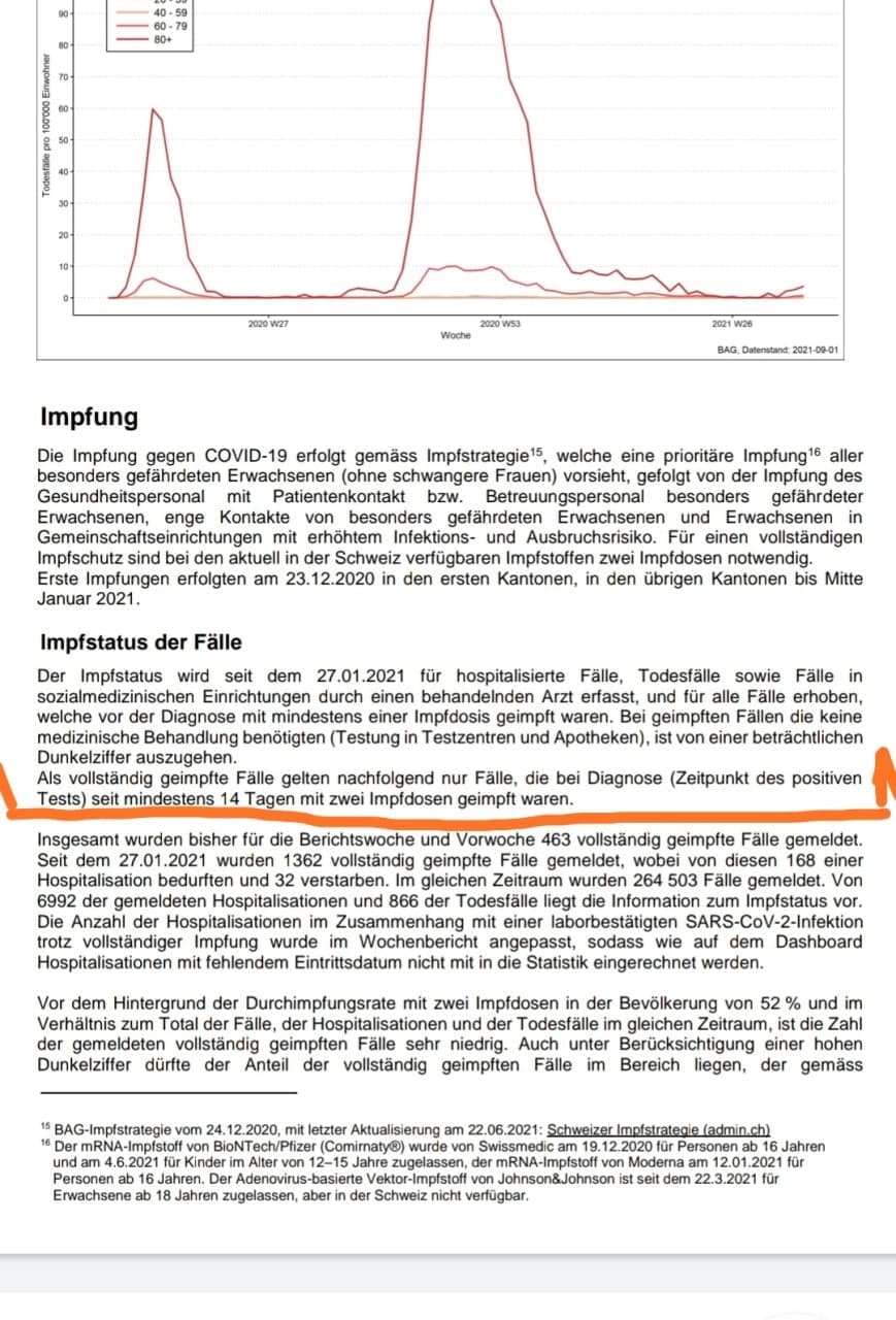 Zahlenspiel kr. BAG Schweiz 3.9.2021: "Geimpft" gilt erst ab 2 Wochen nach der 2. GENimpfung - BAG