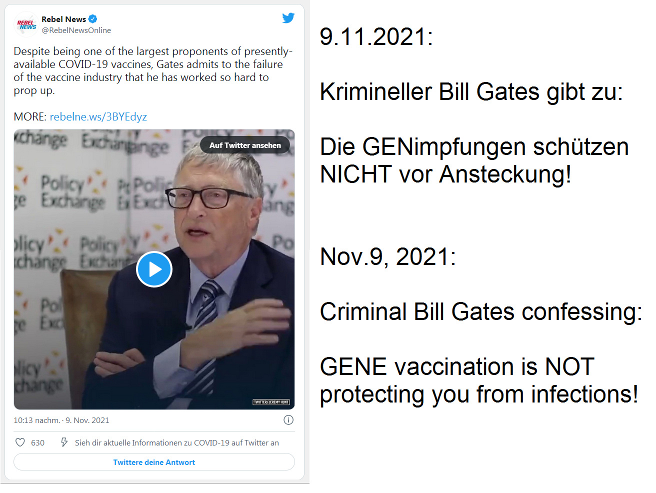 9.11.2021: Krimineller Bill Gates gibt zu: Die