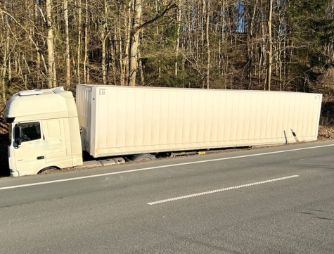 von Fahrbahn ab [37] - Frankenberg: Lkw im Graben muss
