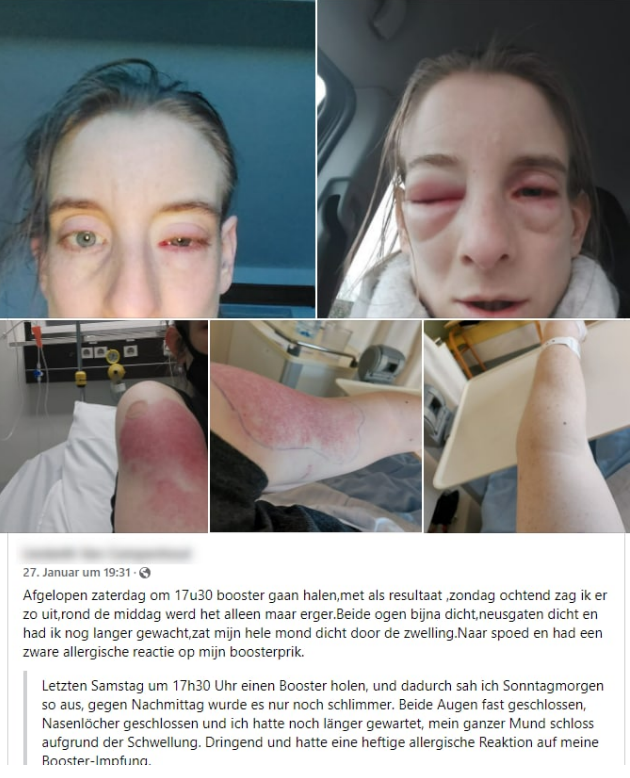 Einige Augenstörungen traten im Zusammenhang mit schweren allergischen oder „anaphylaktischen“ oder „anaphylaktoiden“ Ereignissen auf, für die es 915 VAERS-Berichte gibt. Mehr als 60 Berichte beziehen sich auf „Anaphylaxie“ und Augensymptome im selben Ereignis, wie im Fall einer 55-jährigen Asthmatikerin mit Nahrungsmittelallergien, die auf die zweite Dosis des COVID-Impfstoffs von Pfizer reagierte und laut VAERS-Bericht „wegen ihres schweren Doppeltsehens, des Überkreuzens der Augen und des Herunterhängens der Augen in die Obhut eines Augenarztes gegeben wurde.“