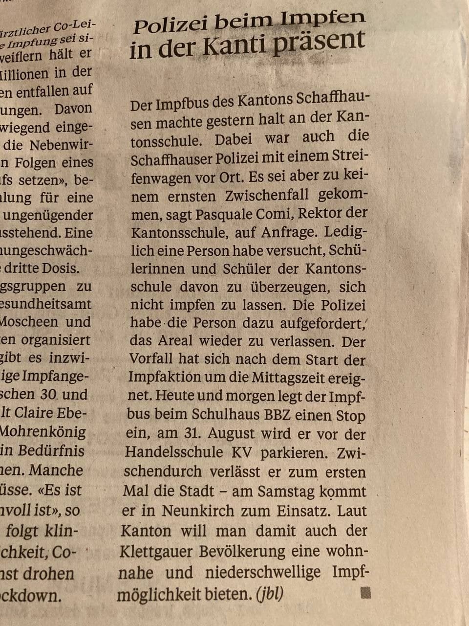 Anmerkung zu Beitrag Heute 08.29, wenn man jetzt die hospitalisierten und toten von Nebenwirkungen noch dazu zählt ist die Bilanz der Impfung ziemlich übel…., ich kann es nicht fassen😥. Soeben hat mir mein Sohn erzählt dass gestern an einer Berufsschule im Kanton SZ ein junger Bursche zusammengeklappt ist und über längere Zeit reanimiert wurde, anschliessend wurde er mit dem Heli geholt, Ausgang bis jetzt unbekannt🤷‍♂️…, ich hoffe nich schon wieder ein Opfer der Nadel….😢