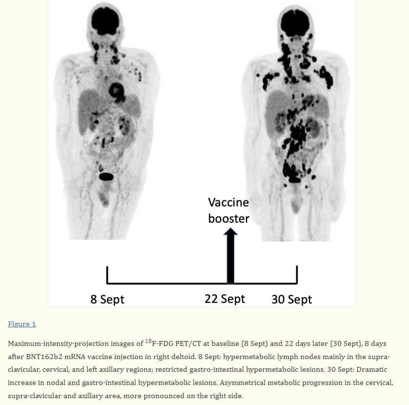 „Die Mechanismen der gemeldeten Daten über Covid-19-Impfstoffe, die mit der Diagnose eines schnellen Tumor- oder Krebswachstums in Verbindung gebracht werden, ähneln wahrscheinlich den Beobachtungen, über die wir in den 1980er Jahren berichtet haben“, sagte der ehemalige Programmdirektor am National Institutes of Health, National Cancer Institute, Molekularbiologe und Immunologe Mahin Khatami, Er bezog sich auf Studien, in denen ein Antigen (ein fremdes Element, das in der Lage ist, das Immunsystem zu stimulieren, um möglicherweise die Synthese spezifischer Antikörper zu bewirken) mit tumorfördernden Stoffen (TPAs) gemischt wurde, wodurch sich das Krebswachstum auf frühere Zeiträume verlagerte (innerhalb von 6 Monaten, statt 12 bis 30 Monaten).