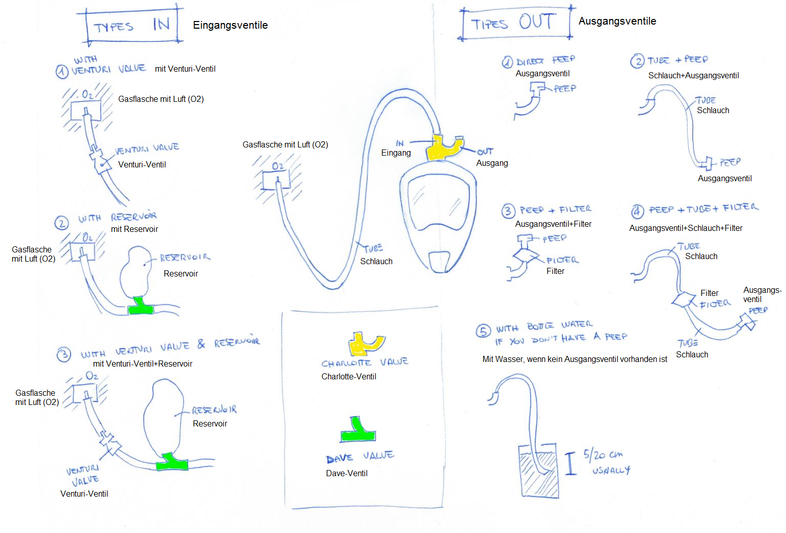 [1,2,3] Umbau einer Tauchermaske in eine Beatmungsmaske: https://www.isinnova.it/covid-19-ted/