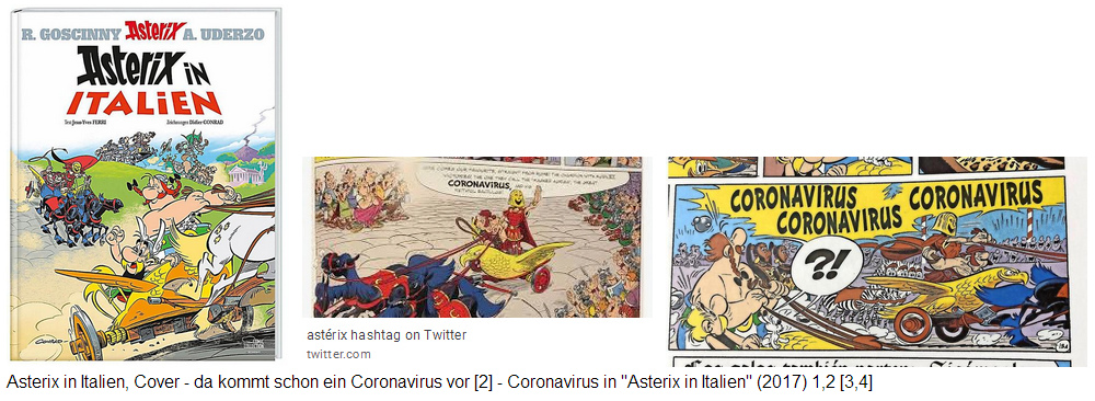 --- da kam Coronavirus schon 2017 im neuen "Asterix in Italien" vor (kann jeder im Buchladen nachsehen, hier ist ein Foto: