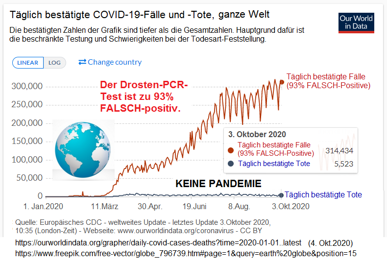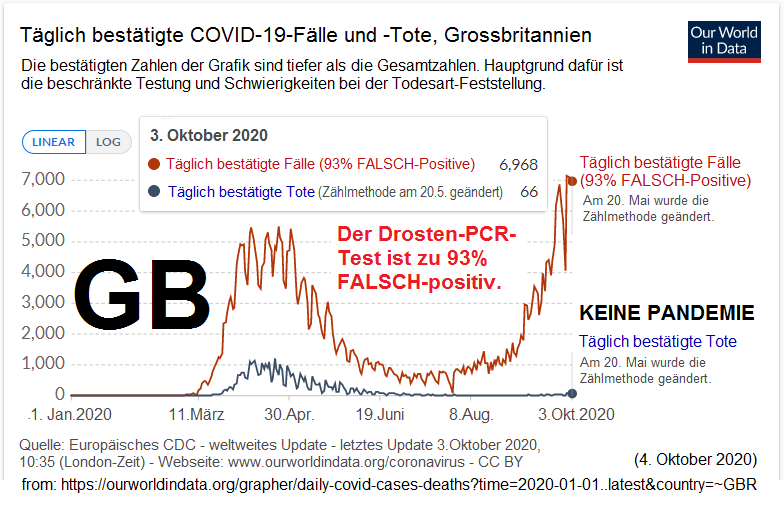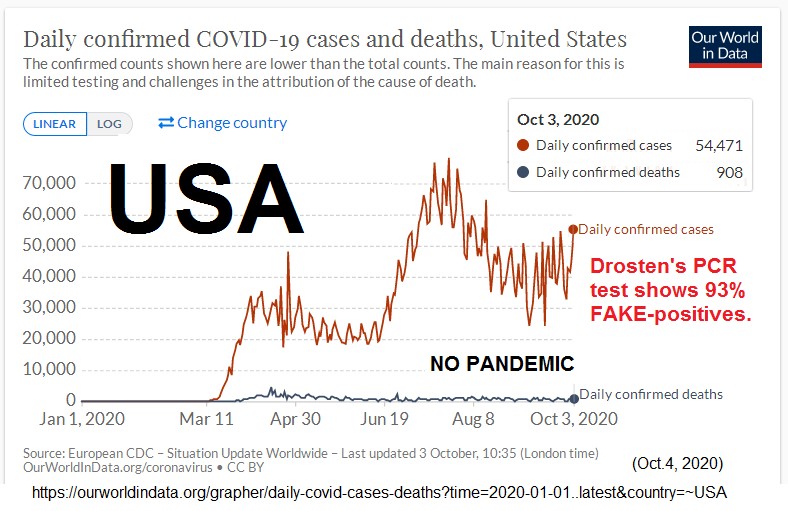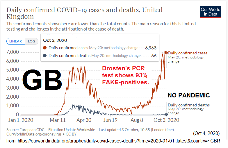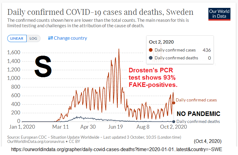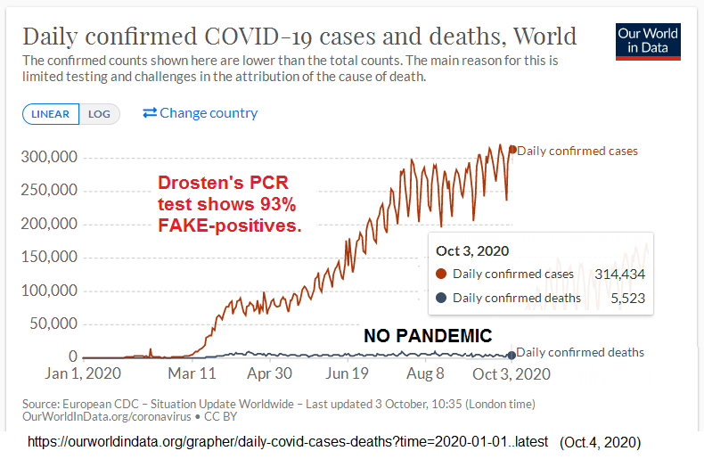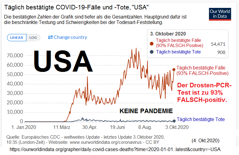 Schlussfolgerung 4.10.2020: Überall, wo Corona19 (Covid-19) "getestet" wird, sind die positiven Resultate 93% FALSCH-positiv.