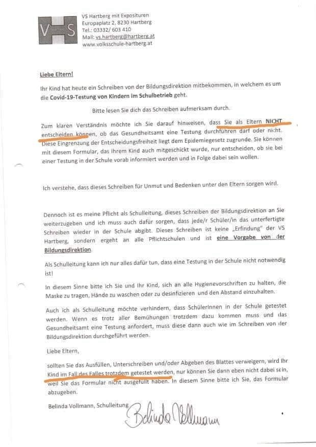 [6] Zwangstestung von Kindern in Hartberg in Österreich - Eltern haben keine Entscheidungsgewalt mehr: