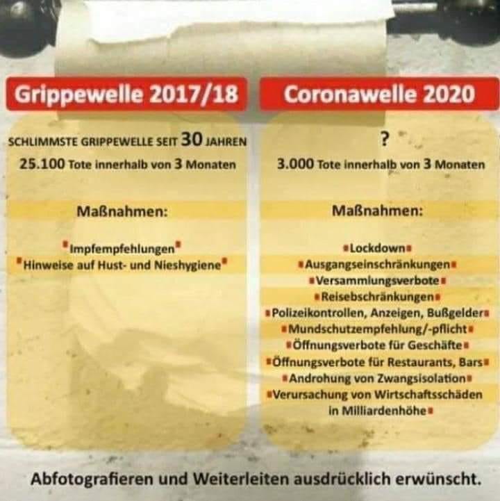 [7] Vergleich Grippewelle 2017-2018 mit Corona19 von 2020: