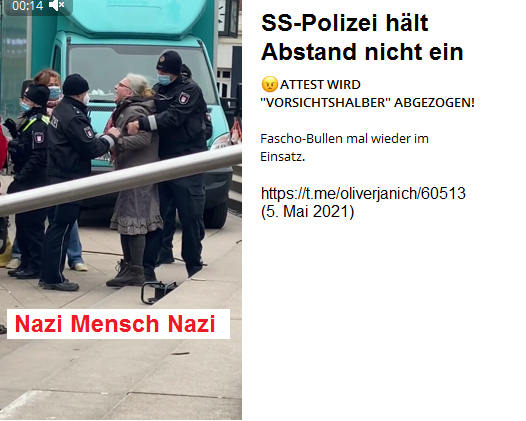 Wahrsch. Bayern 5.5.2021: Kriminelle SS-Polizei von Monster Söder hält Abstand nicht ein, RAUBT das Attest und wird handgreiflich