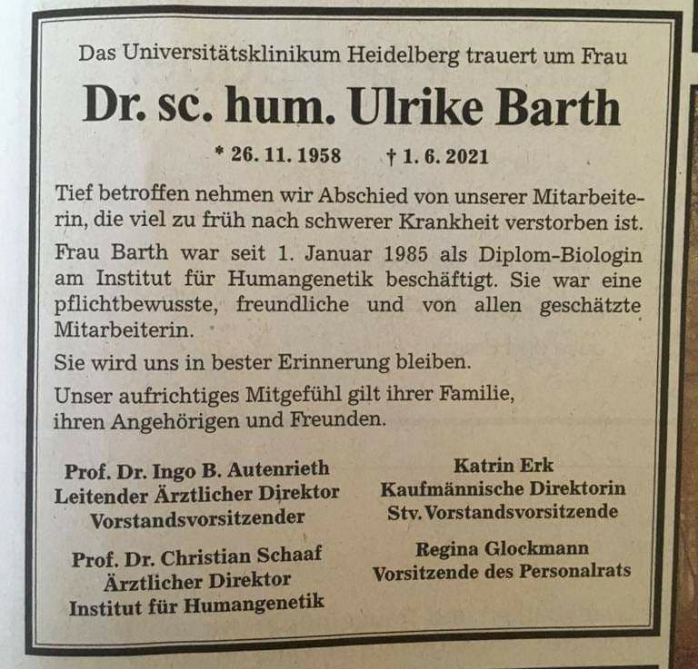 VIER Todesanzeigen aus dem Klinikum Heidelberg vom Juni 2021: