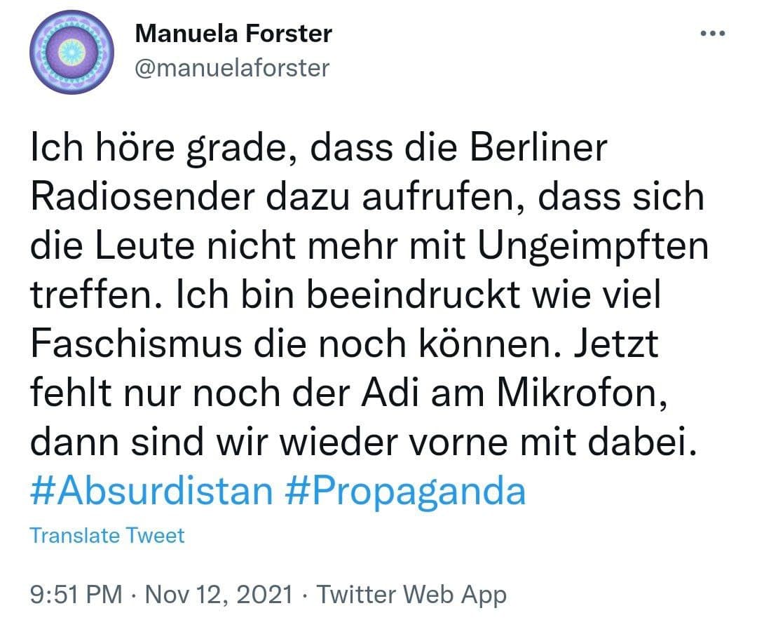 Und wenn sich durch meinen Brief nichts an Ihrer Politik ändert, aber zumindest Kritik wieder zugelassen wird, Dinge hinterfragt werden und Menschen nicht mehr diffamiert und ausgegrenzt werden, dann haben wir schon viel geschafft!