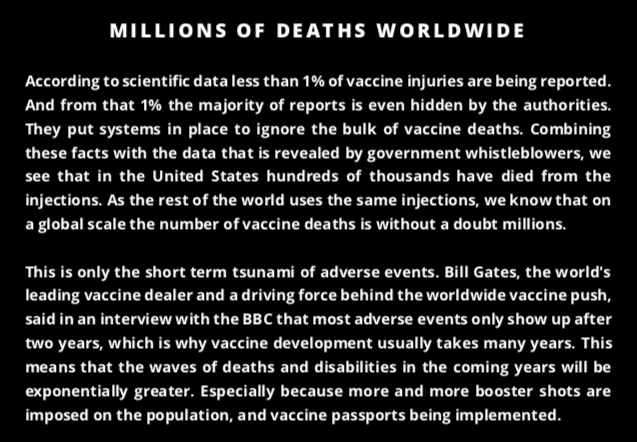 Ein paar Telegram-Kanäle über die tödlichen Genimpfungen, die angeblich "gegen Corona19" (Covid-19) sein sollen:
