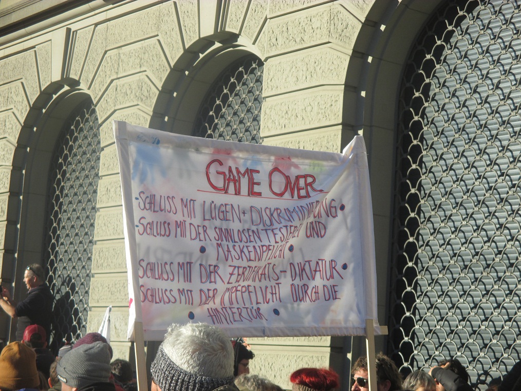 Demo in Bern 22.1.2022: Plakat "Game over" [8]