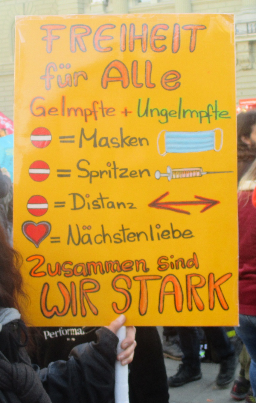 Demo in Bern 22.1.2022: Plakat "Freiheit für alle" [12]