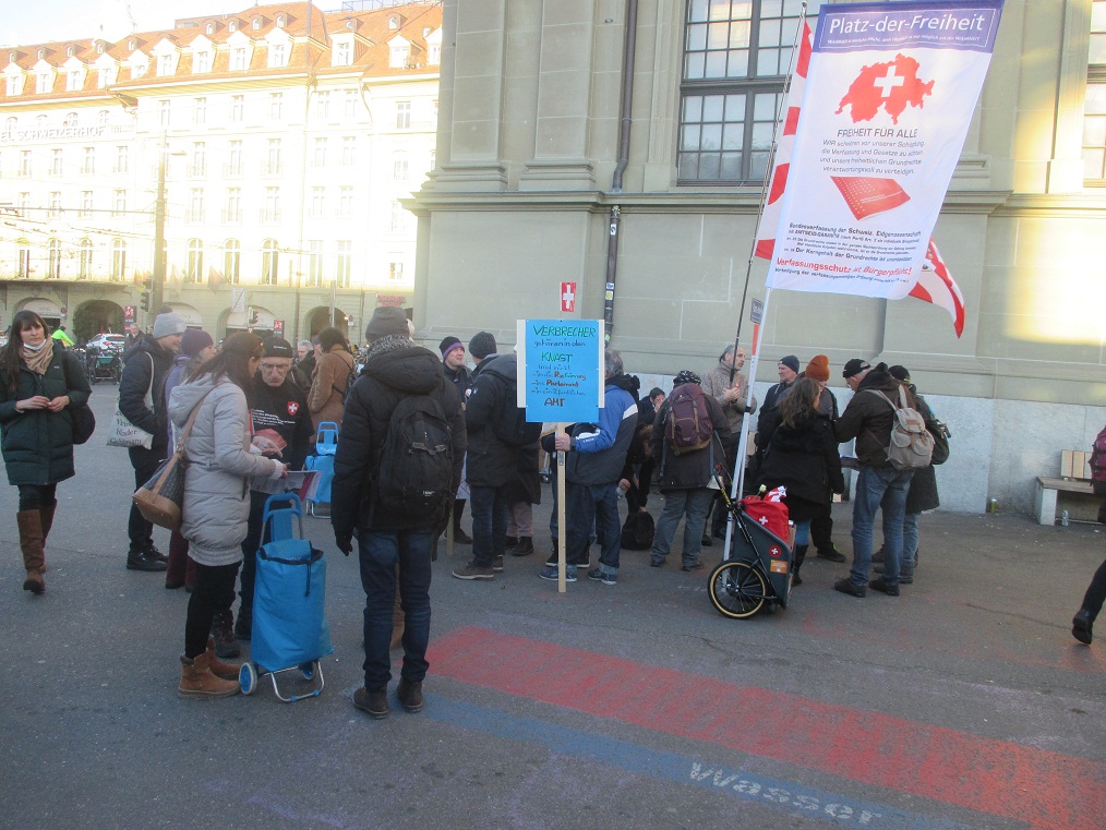 Demo in Bern 22.1.2022: Plakat "Platz der Freiheit" der