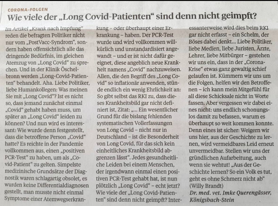 in Sachen Coronawahn und tödliche "Coronaimpfungen",