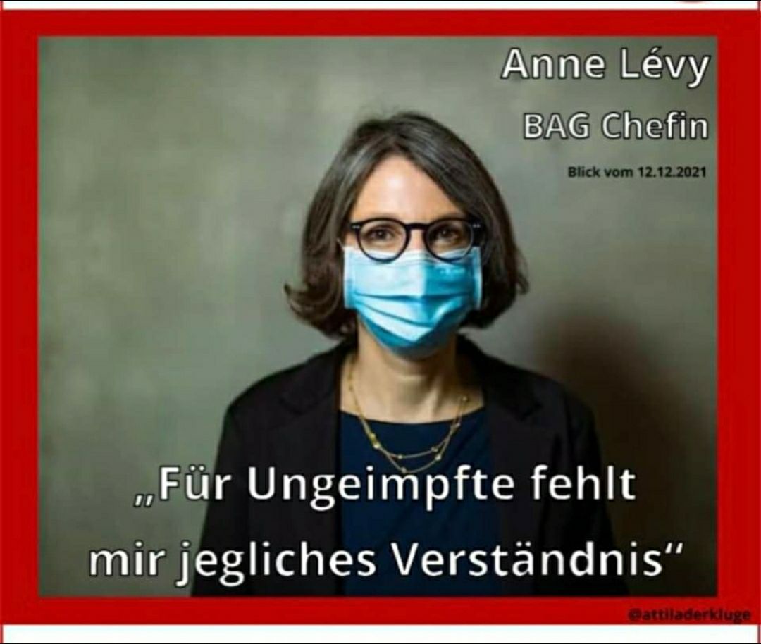 Frau Levy von der Zionsynagoge ist hochgradige Täterin in Sachen Coronawahn und tödliche "Coronaimpfungen", denn sie hat ALLE Warnungen NIE ernst genommen mit der Behauptung, der Nutzen sei immer noch grösser als der Schaden. Scheinbar müssen zuerst alle Geimpften sterben, bis sie zugibt, dass der Schaden grösser als der Nutzen ist. Sie nimmt von den Wahrheitswissern NICHTS ernst, KEINE Statistik, KEINE Grafik, sie redet NICHT mit den Warnern, Bestattern, Blumengeschäften, Hebammen, Spitexangesatellten etc. Sie VERWEIGERT jede Untersuchung der "Coronaimpfungen" unter dem Mikroskop, oder das Blut der Geimpften unter dem Mikroskop. Jeder tote geimpfte Person ist somit FAHRLÄSSIGE TÖTUNG, und jede tote geimpfte Person unter 65 ist somit meines Erachtens MORD, wenn kein Tod durch Gewalteinwirkung oder durch eine Krankheit von vor der Impfung vorliegt.