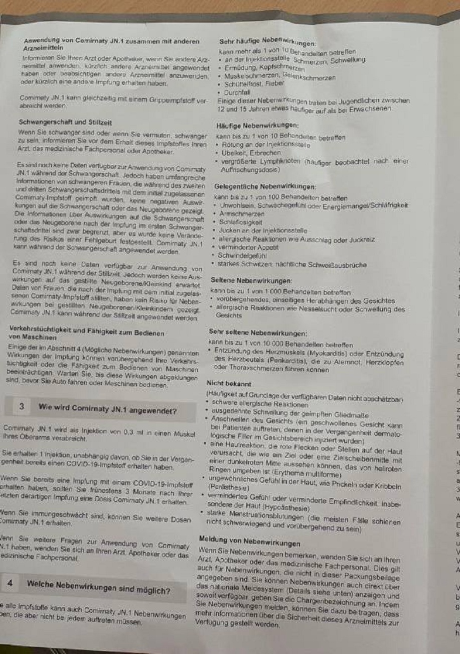 2020-2022: Frau Levy nahm den megagrossen Beipackzettel der Nebenwirkungen von Pfizer nicht ernst