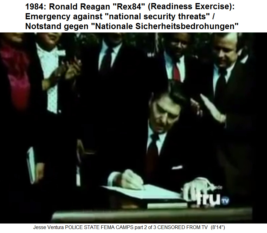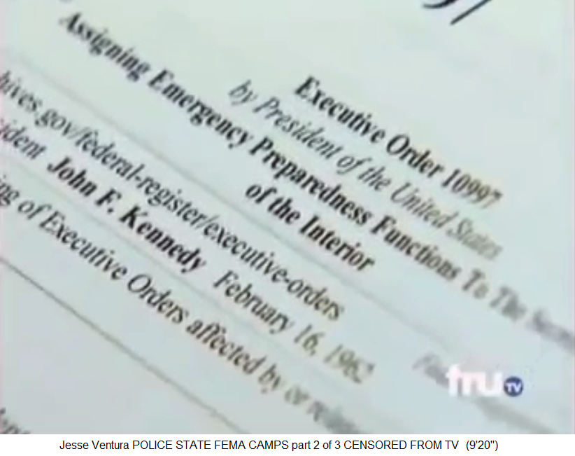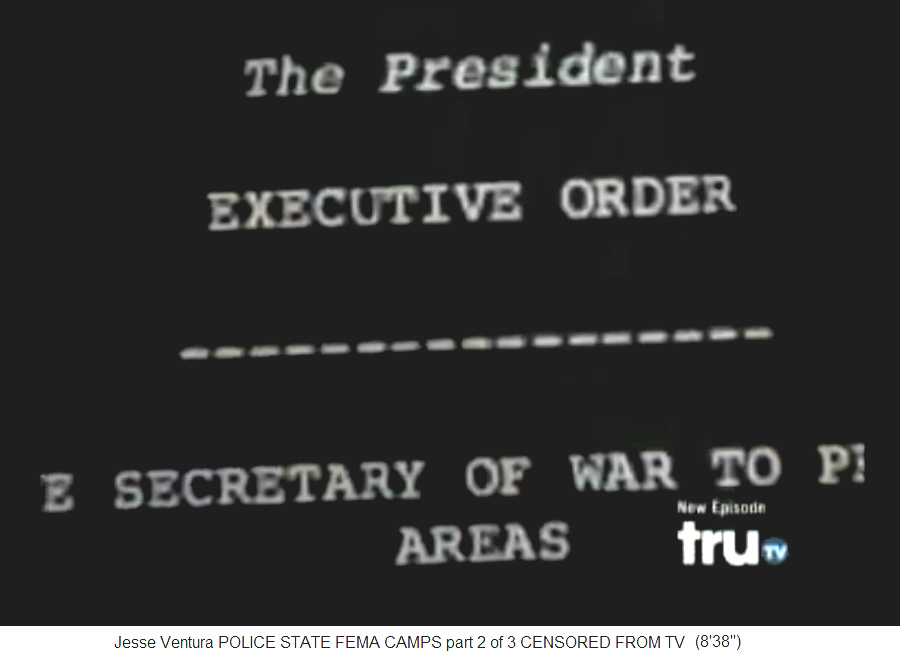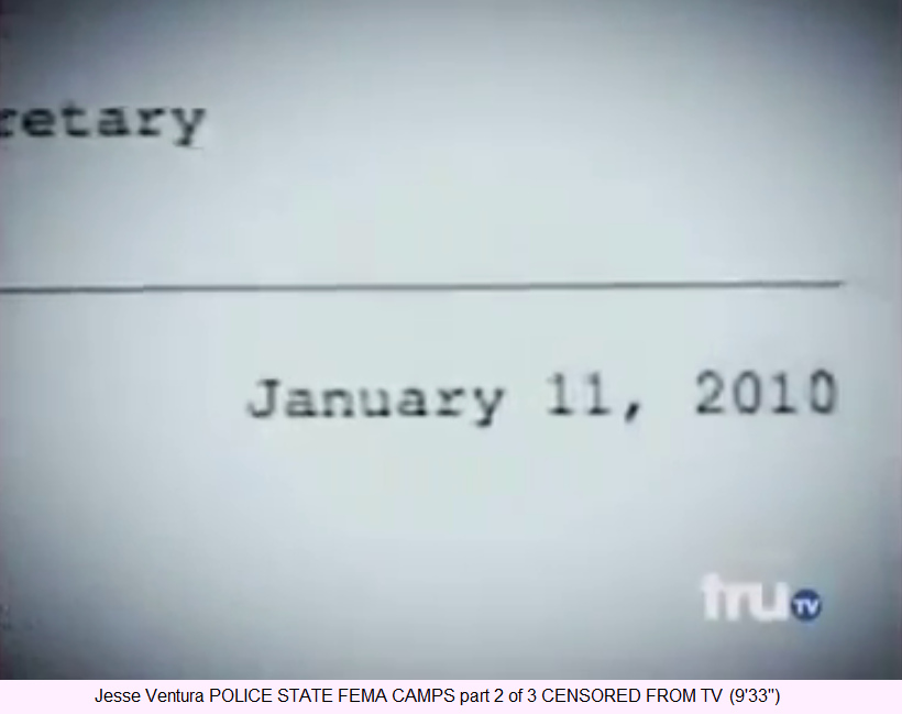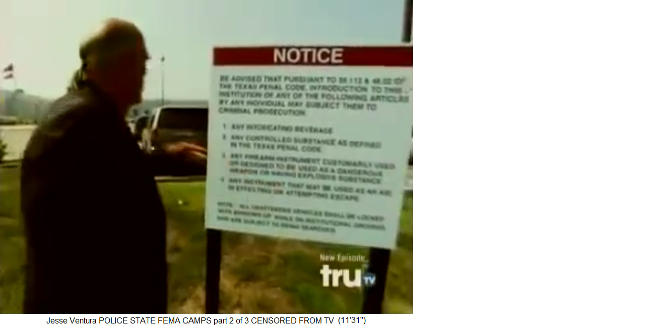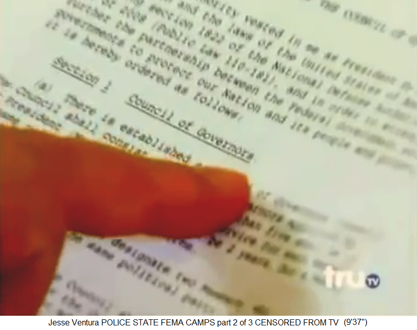 -- Jesse Ventura: Allí se describe la construcción de los campamentos de FEMA (11'2 ''). Existe la resolución especial de ley sobre la cual estamos hablando (11'5 '').