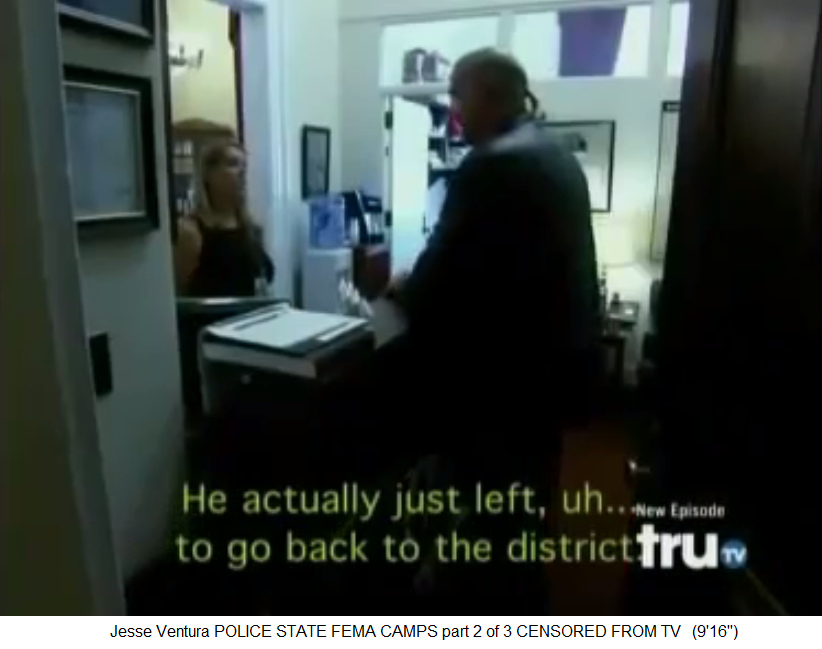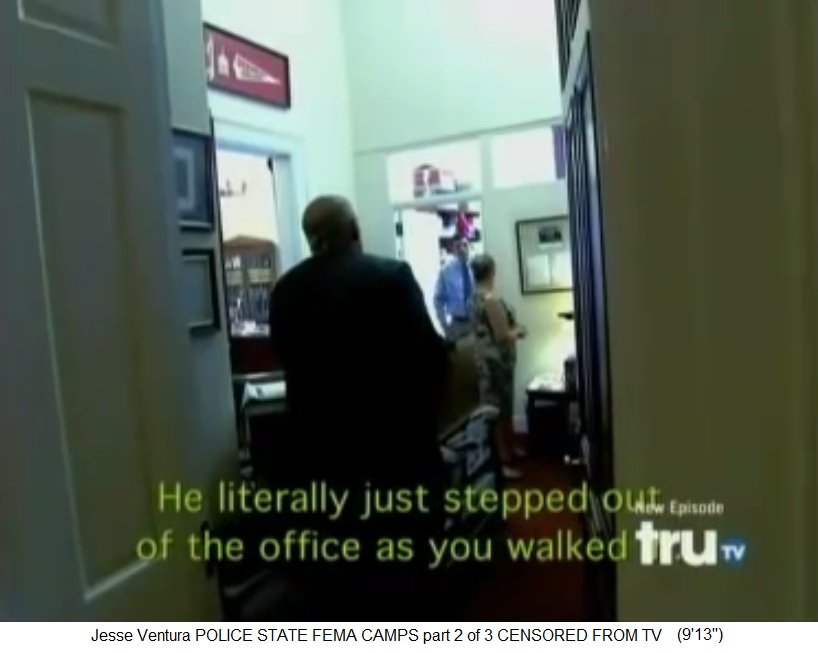 -- Jesse Ventura: Su personal me recibió hasta que se enteraron de lo que quería hablar (9'7 ''). Debería tratarse de los campos de FEMA. Luego se acabó la comunicación (9'10 '').