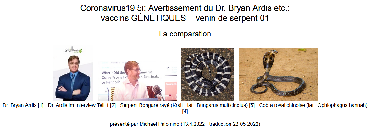 [Thèse claire: Wuhan en Chine a été empoisonné avec un venin de serpent: vipère (Krait) et cobra]