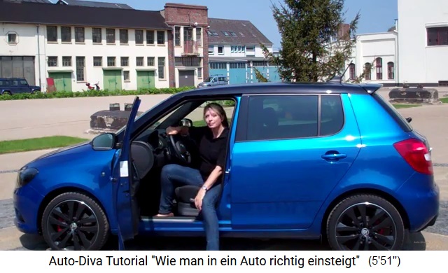 [17-19] In ein Auto einsteigen: Auto-Diva Tutorial "Wie man in ein Auto richtig einsteigt": https://www.youtube.com/watch?v=4pw_nFZJpIg