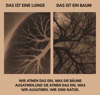 Zitat: "Wir atmen das ein, was die Bäume ausatmen, und sie atmen das ein, was wir ausatmen. Wir sind Natur."