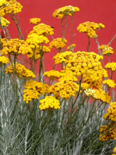 Der lateinische Name Helichrysum bezieht sich auf die „sonnengoldfarbenen“ Blütchen (helios=Sonne, chrysum=Gold), der „Zweitname“ italicum bezieht sich auf die Herkunft der sehr, sehr sonnenhungrigen Krautes, das man für einen leichten Currygeschmack tatsächlich in diversen Gerichten (kurz) mitkochen kann.