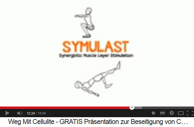 Man muss also wissen, welche Übungen (englisch: "workouts") die Cellulite verschlimmern können, um diese zu vermeiden. Die Symulast-Übungen dagegen beseitigen die Cellulite. [6min.50sek.]