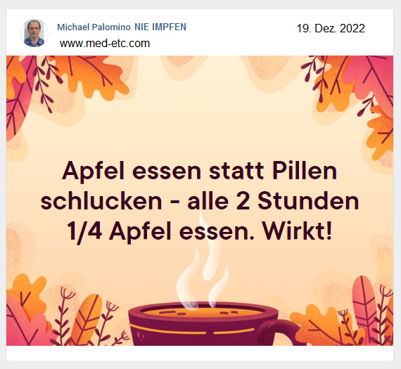 [1] Text: Text: Apfel essen statt Pillen schlucken: Michael Palomino NIE IMPFEN 19.12.2022