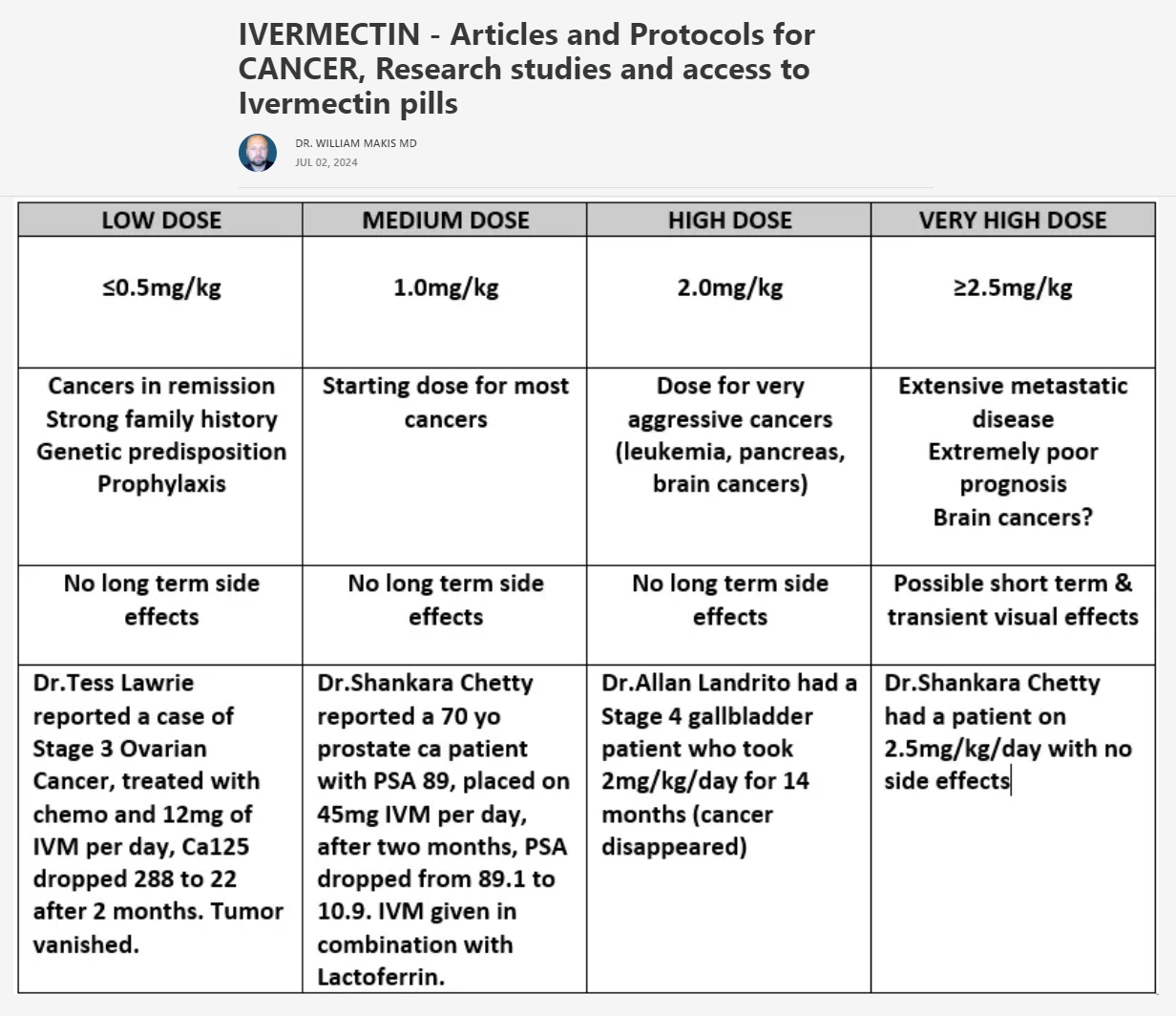 Heilwirkung von Ivermectin gegen Krebs: Das Einnahmeprotokoll von Dr. Makis -- 2.7.2024 [1]