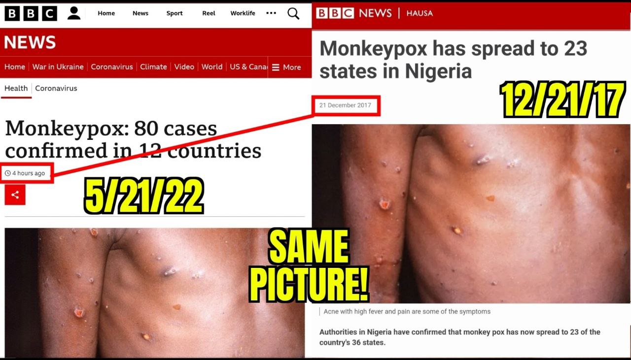 Kriminelle Rothschild-Medien 22.5.2022: präsentieren alte Fotos von Affenpocken als Affenpocken von 2022