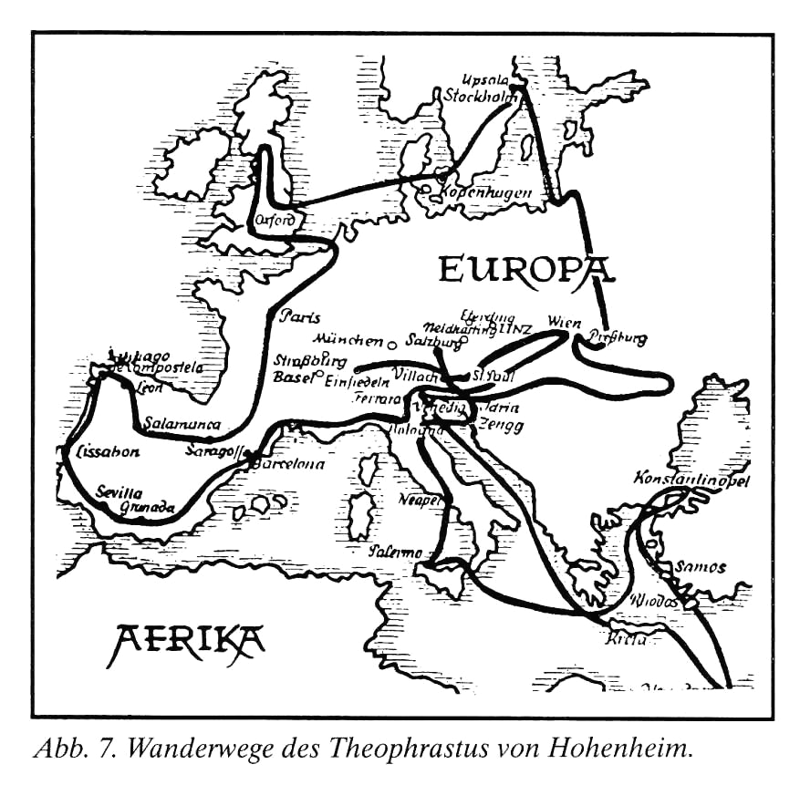 aus: 500 Jahre Paracelsus. Sonderdruck zur Feier des 500. Geburtstages von Paracelsus; Schweizerische Paracelsus-Gesellschaft - Stiftung Altes Bad Pfäfers - Vereinigung der Freunde von Bad Pfäfers; Hallwag AG Bern, 1994, S.39